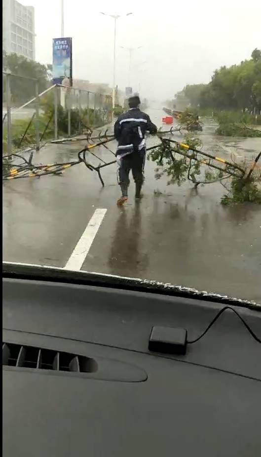 12:40到了目的地,经检查,患者小腿严重损伤,过多的失血让患者出现了生命体征不稳,经过包扎、止血、固定伤肢后,医生护士继续在车内抢救,救护车争分夺秒赶回医院。回程路上,更多的障碍物,半路中七零八落横放着的多个百斤重的大型护栏。唯一的回程被栏住,所有人都知道这个时候不可能等待外援,这时候吴福明护师穿着简单的护具,顶着风,以及随时飞来砸下的重物,下车把护栏一个一个挪开。车外,吴福明护师是急先锋,车内俸玉华医生继续维持对患者救治,司机小心避开各种障碍物,一车人都在守护生命,他们无所畏惧!“虽然接下来的每次出诊都是艰险万分,但我们仍安全地保质量地完成了任务! ”当天接诊了12次120任务,吴福明一脸疲容的说到。