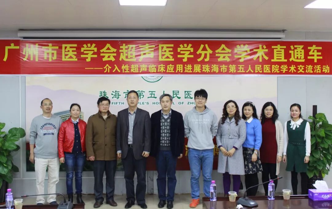 为促进珠海市第五人民医院介入性超声的发展及应用,达到送医、送教下基层的服务目的,1月27日下午,由广州市医学会超声医学分会主办,广州医科大学附属第一医院(简称“广医一院”)超声科与珠海市第五人民医院(简称“市五院”)协办的广州市医学会超声医学分会学术直通车——介入性超声临床应用进展学术交流活动在市五院顺利召开。市五院院长曹治、广医一院超声科主任、广州市医学会超声分会主委汤庆教授、广医一院、广州市医学会超声分会委员兼秘书何炼图副主任医师、广医一院介入超声周大治副主任医师、周兴华医生、市五院超声科及各临床科室医护人员参加活动。